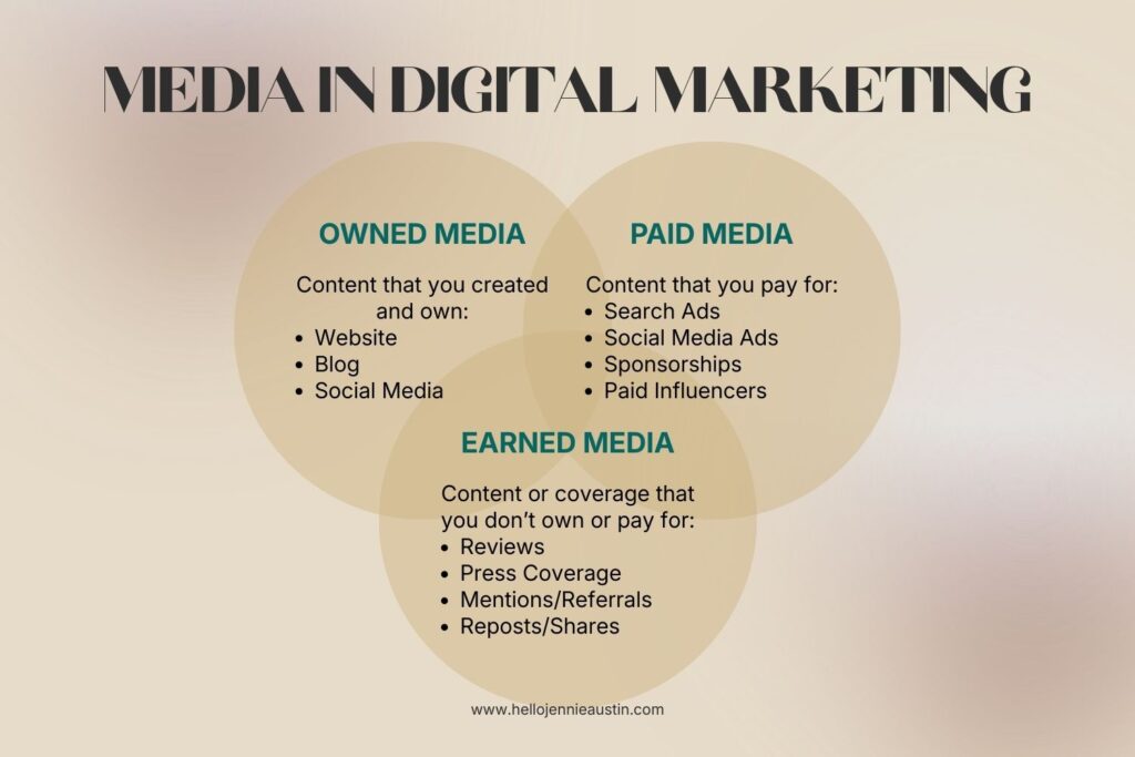 • Owned media: your website, blog, email list, social profiles